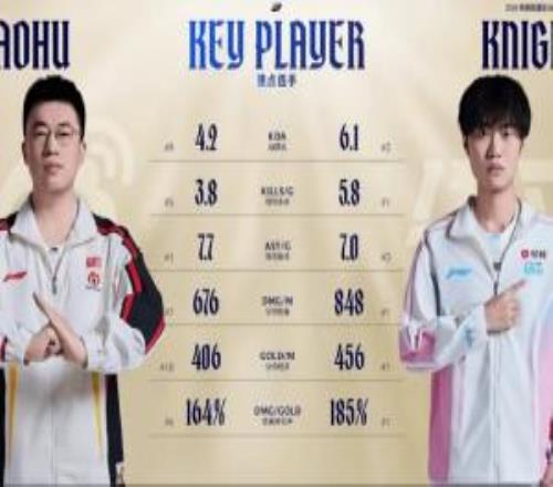 双方中单数据对比:Knight多项数据领先于Xiaohu