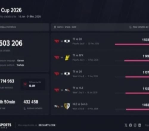 外媒统计LCK杯观众峰值前五:T1包揽前四,决赛未进入前五