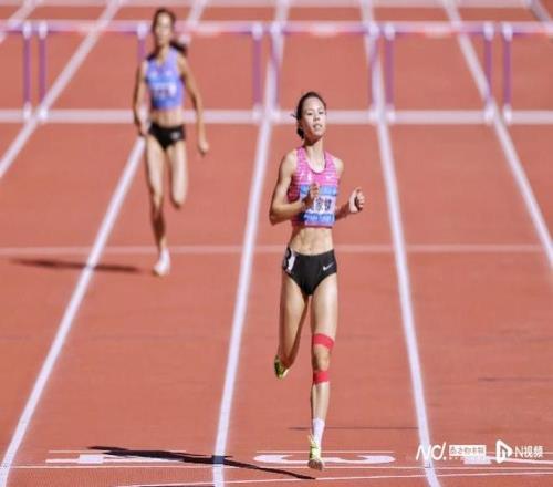 莫家蝶轻松锁定400米栏决赛席位。南都N视频记者 黎湛均 徐杰 摄