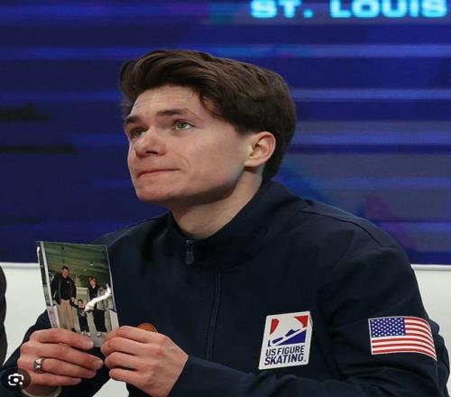 2026年1月,美国花样滑冰锦标赛。Maxim站上了领奖台,这次他拿到了铜牌。连续三年第四之后,他终于突破了。