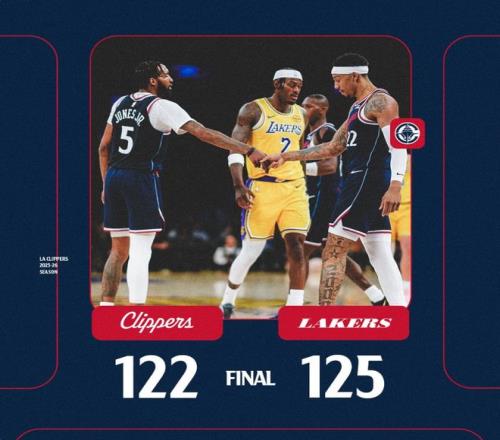 快船在一度落后湖人16分的情况下完成过反超,末节两队也鏖战至最后一刻,詹姆斯终场前8秒出现了致命失误,好在巴图姆三分绝平不中湖人才涉险过关。这场比赛快船的科林斯、伦纳德都伤退,詹姆斯13分11助攻,里夫斯29分6篮板,东契奇38分11助攻8个三分。这场胜利让湖人继续排在西部第五。