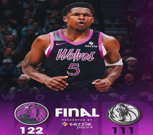 爱德华兹疯狂出手30次命中16球,三分13中5,拿到40分6篮板1助攻1抢断,他帮助森林狼大胜独行侠,此役后森林狼胜率61.8%仅比湖人少0.04%的胜率排在西部第六。