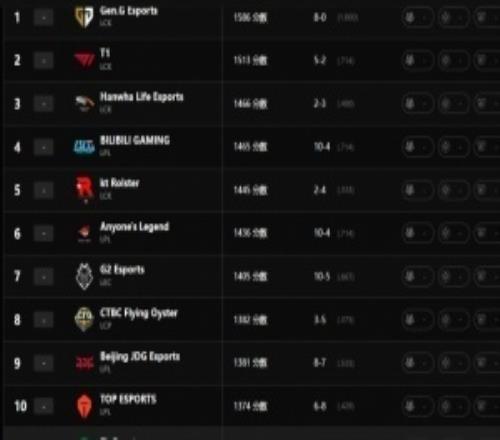 听见你说!拳头更新世界战队实力排名:GEN第一HLE第三BLG第四TES第十高于BFX