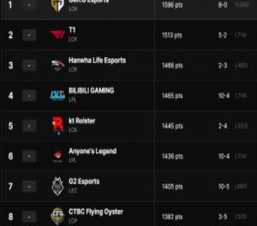 拳头官方战力榜单:GEN第一T1第二BLG第四,没打季后赛的HLE第三?_24直播网