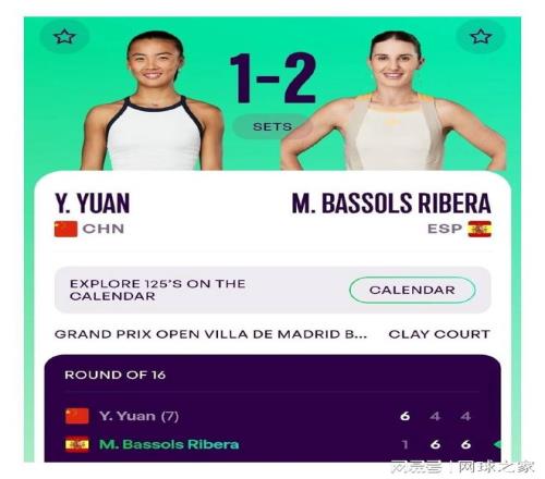 再来关注女网方面,WTA125马德里站第二轮比赛中,中国金花袁悦在先赢一盘的情况下连丢两盘,以6-1 4-6 4-6不敌里贝拉,遗憾止步。本站比赛袁悦收获15个积分和1740美元奖金。