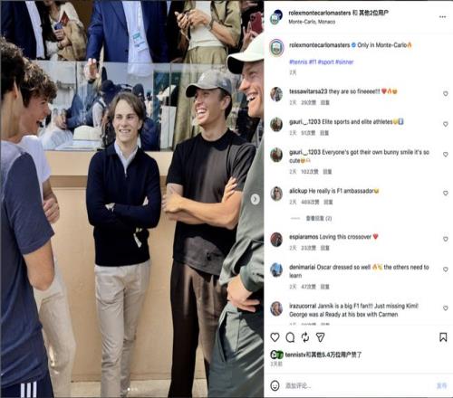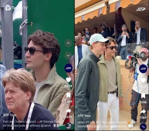 F1梅赛德斯车队车手乔治·拉塞尔现身蒙特卡洛大师赛,不仅现场观看了扬尼克·辛纳的八强战,还出现在了2026赛季首场“辛卡对决”的看台上。
