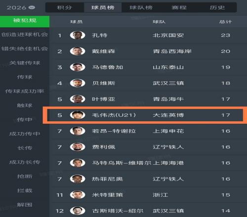 邵佳一昨晚最大发现:毛伟杰1数据成中超前十唯一中国人!